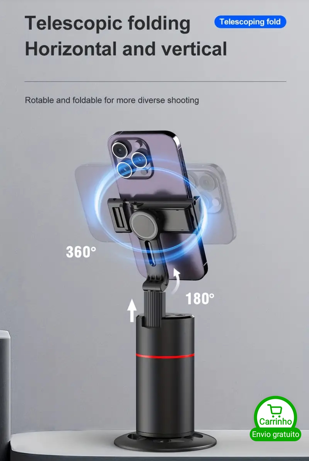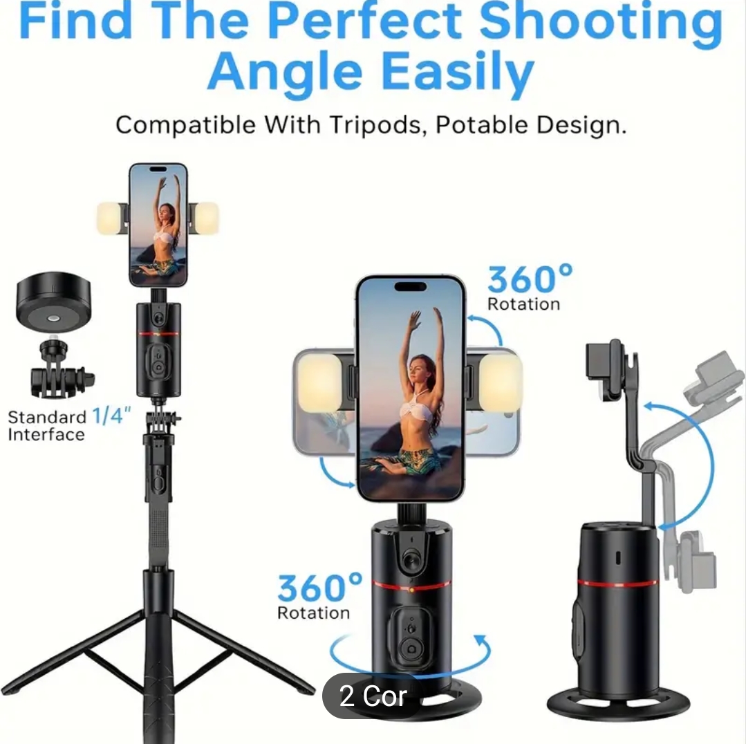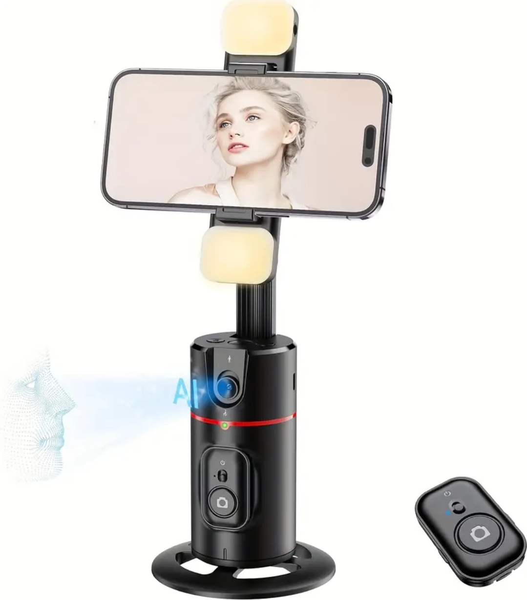 Suporte de telemóvel com rastreamento automático de rosto a 360°, Gimbal inteligente com disparo automático alimentado por IA e transmissão ao vivo panorâmica, Suporte de secretária para TikTok, YouTube, Vlogging - Material ABS